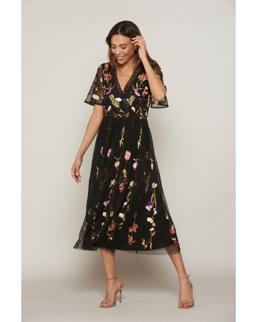 Frock And Frill Lorella Black Floral Wrap Front Dress Lyst Uk