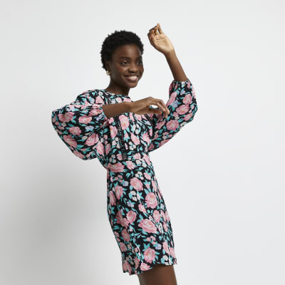 Black Floral Mini Dress River Island